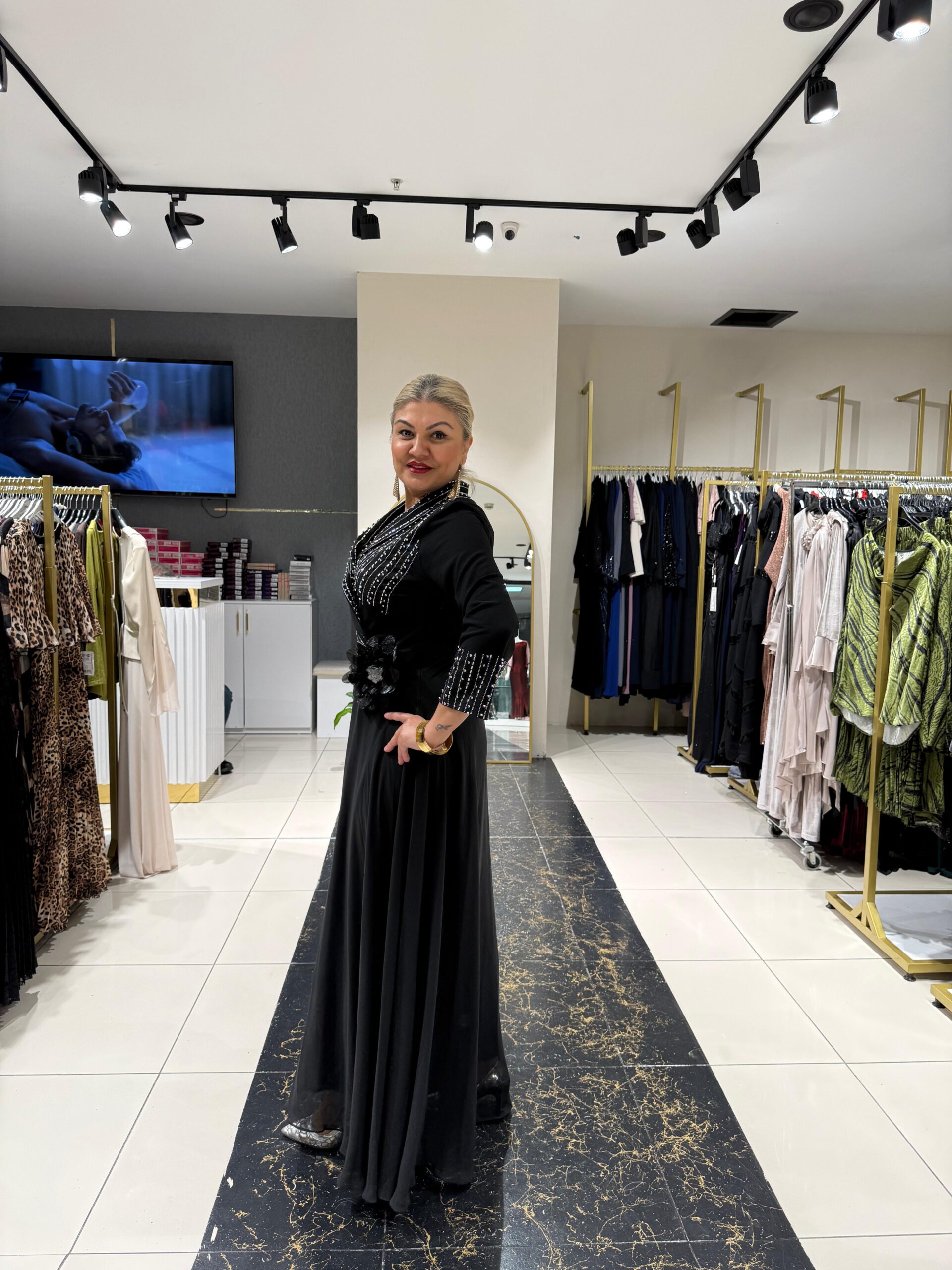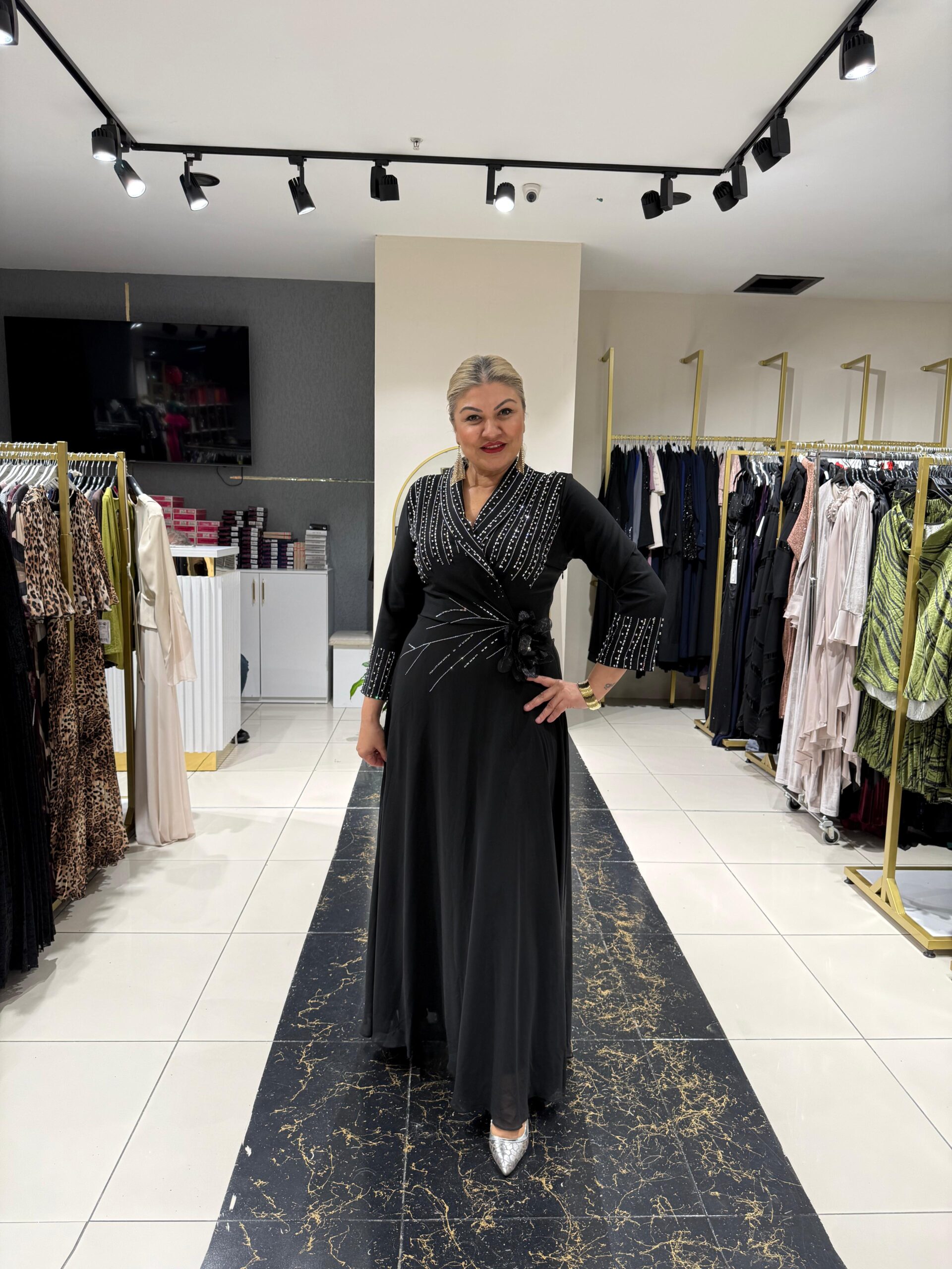 Gül Dalı Siyah Abiye Elbise